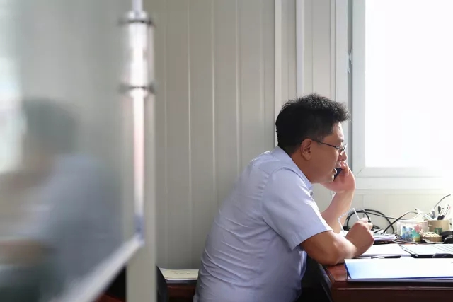 8:50濟南齊魯黃河大橋建設(shè)指揮部,我們?nèi)缂s見到了趙世超。一進入項目部“板房”辦公室,他就立馬打電話安排起了今天的工作,這種工作狀態(tài),早已是他熟悉的工作節(jié)奏。從2001年畢業(yè)開始,趙世超就一直住板房、跟工程,有著17年項目一線工作經(jīng)驗的他,是建設(shè)一線一名結(jié)結(jié)實實的“老將”。