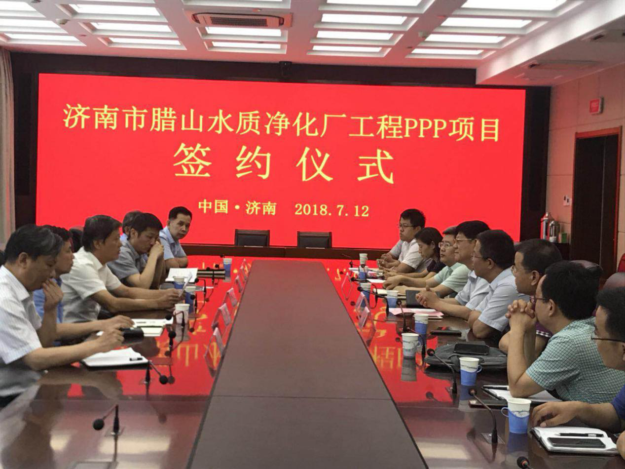 2018年7月12日上午10點30分,在龍奧大廈G1407會議室,市城鄉水務局舉行了濟南市臘山水質凈化廠工程政府和社會資本合作(PPP)項目簽約儀式,與中標單位北控水務(中國)投資有限公司簽署了ppp項目合同。會議由市城鄉水務局排水處處長湯啟剛主持,市城鄉水務局副巡視員朱丹彤做出重要講話,資產運營公司副總經理李琰、北控水務東部大區總經理于良法先后發言。