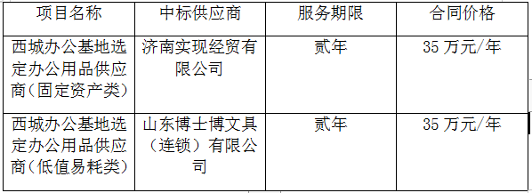 西城辦公基地辦公用品供應商詢價公示