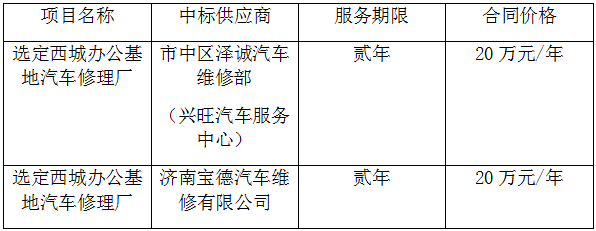 西城辦公基地汽車修理廠詢價公示