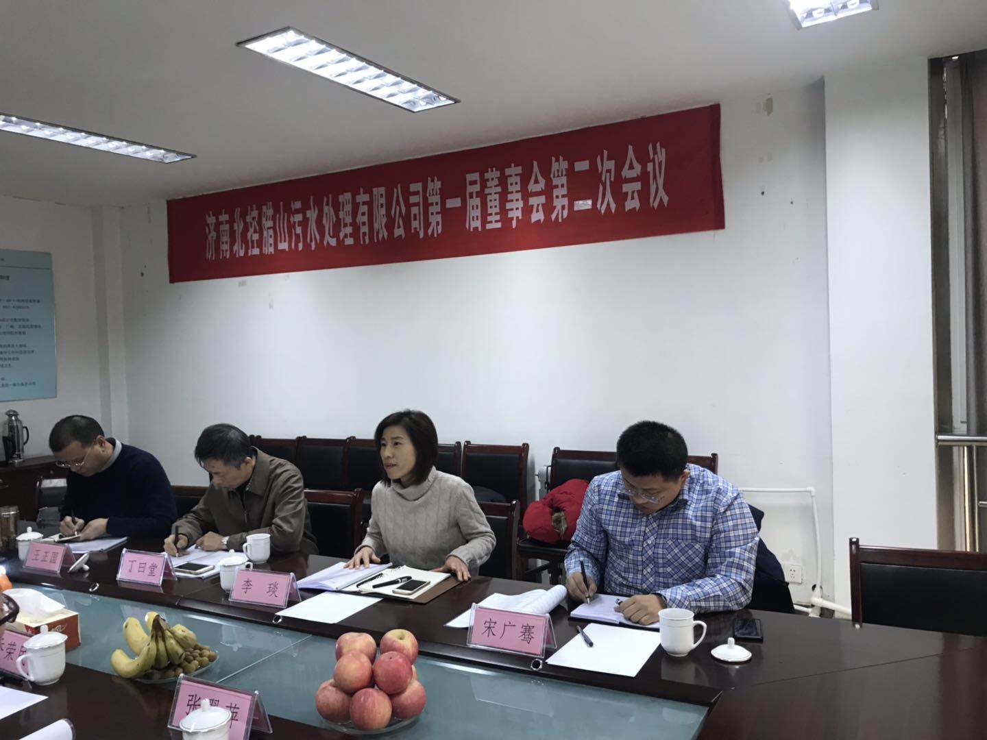 總經理喬榮民向董事會匯報領導班子職責及分工,副總經理史明文匯報北控臘山污水處理有限公司施工進度計劃。