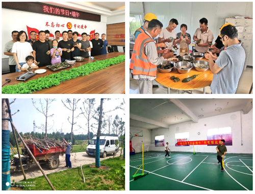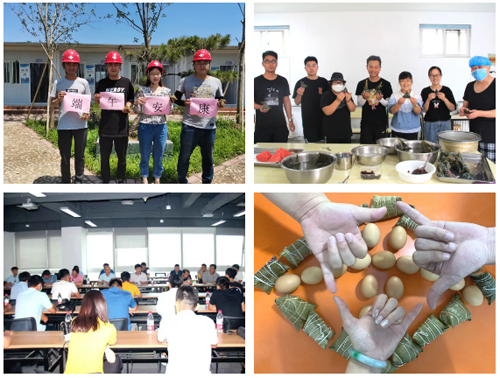 工程四部分別組織所屬黃河防護林提升工程項目部、先行區市政道路項目部、濟南四建集團新舊動能轉換先行區孫耿街道七村整合安置區(一期)工程項目部及各參建單位開展以“我們的節日•端午”為主題的端午節包粽子、掛艾葉、衛生清理等活動。大家一邊包著粽子,一邊交流各自家鄉的端午習俗,感受著“家”般的溫暖。