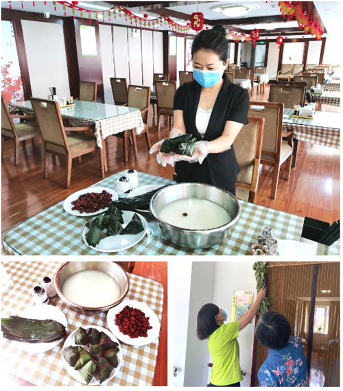 為響應疫情防控的號召、保證長者的生命健康安全,金齡健康-山東濟南養老服務中心的舜耕餐飲以及園區的工作人員們親手包好了粽子,將飽含著“端午安康”寓意的粽子親手送到每位長者的家中。同時,工作人員們挨家挨戶為長者贈送艾草,并幫助長者將艾草懸掛在門口。長者朋友們親手為園區的工作人員們編織了驅災病、保安康的五彩繩,并以詩詞等形式為工作人員送出了美好的祝愿。