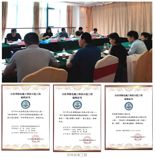 評審過程中,專家組對黃河路橋綠色施工資料的規范性和取得的實際成效給與了很高的評價,四項工程以1項優秀和3項良好的好成績順利通過驗收。山東省綠色施工科技示范工程開展5年以來,黃河路橋先后有22項工程榮獲綠色施工科技示范工程,其中順河高架南延和濟廣高速濟南連接線(鳳凰山至南繞城段)工程達到優秀等級。
