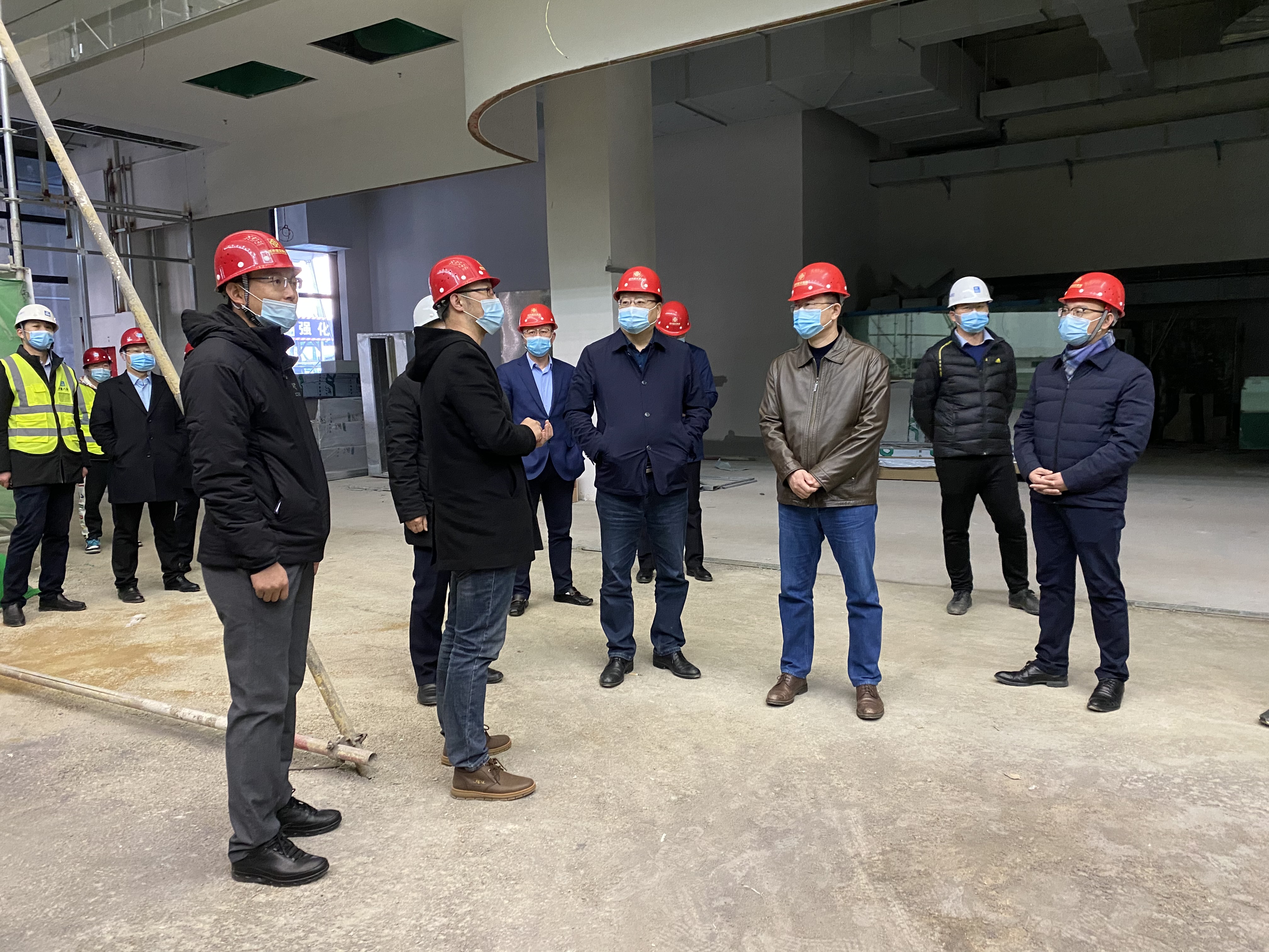 集團領導先后來到三館二期、濟南黃河隧道、鳳凰黃河大橋、山大二院北院區、中科院濟南科創城項目現場,詳細了解了春節期間各項目的工作安排,對廣大留濟過年建設者表示感謝,要求各項目要安排好一線建設者的工作生活,做好各方面保障工作,讓大家感受到集團的關懷和溫暖。集團領導實地察看各項目疫情防控措施落實情況和安全生產工作,強調節日期間要緊抓安全不松懈,從嚴從實從細做好各項工作落實,在確保安全和質量的前提下,攻堅克難加快建設進度,以優異的成績向建黨100周年獻禮。