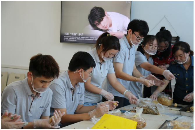 活動(dòng)中,大家認(rèn)真學(xué)習(xí)了月餅的制作方法,稱(chēng)重、捏團(tuán)、入模、成型,每個(gè)人分工作合作,每個(gè)步驟都做的一絲不茍。經(jīng)過(guò)二十分鐘的烘烤,新鮮的月餅伴著香甜的氣息端出烤爐,大家也在辛苦過(guò)后品嘗到了自己的勞動(dòng)成果。