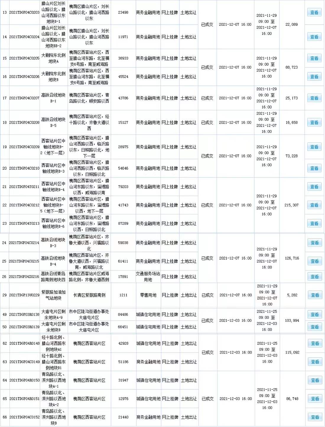 其中山東新銘潤能源有限公司摘得長清區(qū)紫薇路加油加氣站地塊;濟(jì)南龍湖世高房地產(chǎn)開發(fā)有限公司摘得槐蔭區(qū)經(jīng)十路北側(cè)、臘山河西路東側(cè)A1、B1地塊,未來此處將建設(shè)龍湖天街項(xiàng)目。