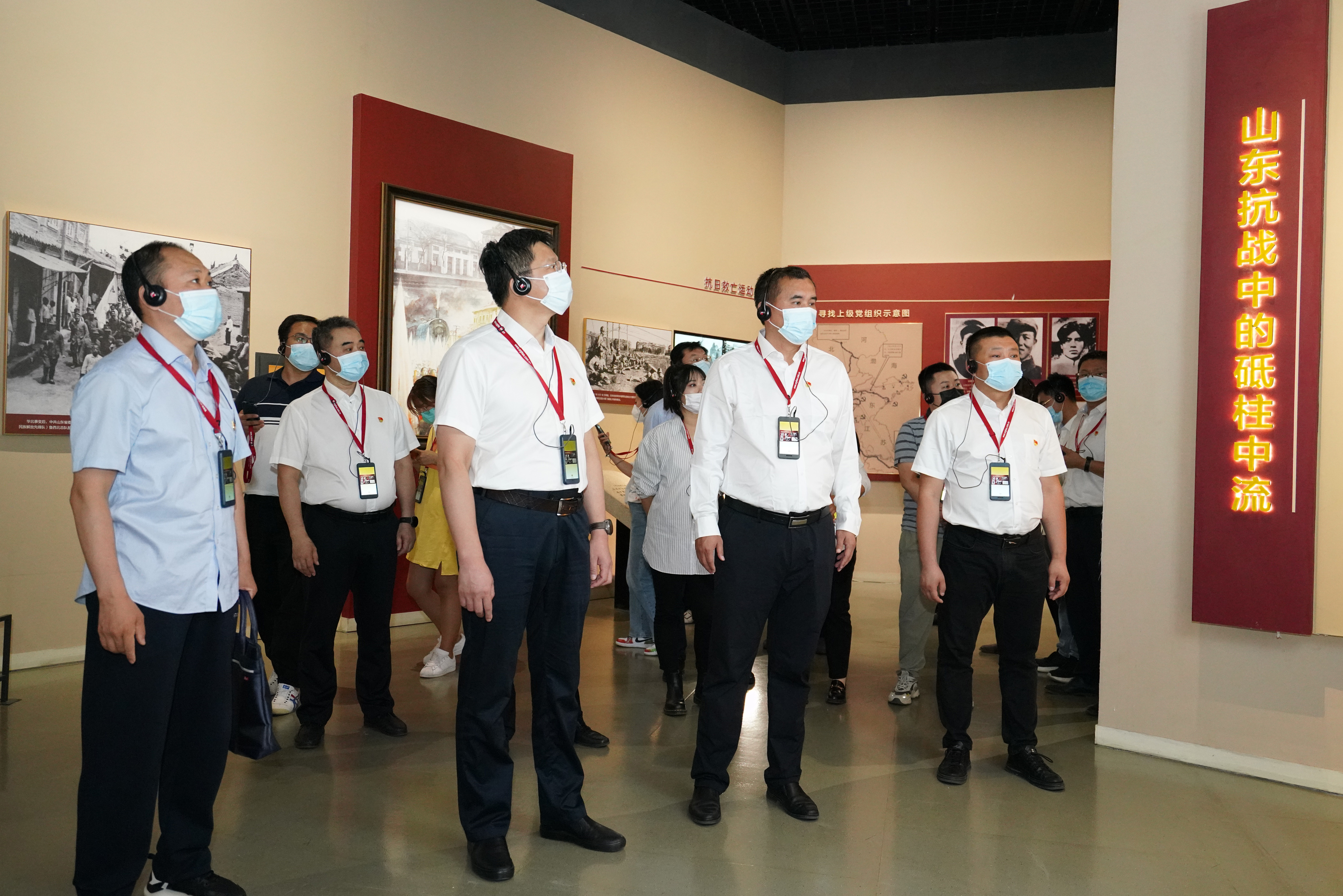 在一樓“初心--山東革命歷史文物展”展廳,全體人員嚴格落實疫情防控要求,借助“語音導(dǎo)覽”服務(wù)系統(tǒng),進行自助式參觀。大家飽含對革命先烈的崇高敬意,仔細觀摩,詳細傾聽,從現(xiàn)場陳列的不同歷史時期的珍貴文物、歷史畫卷和革命先烈事跡中,感悟山東革命發(fā)展的百年風雨歷程。深刻感受到,建黨精神已深深融入山東群眾的歷史血脈,今天的美好生活,離不開革命前輩的浴血奮斗。