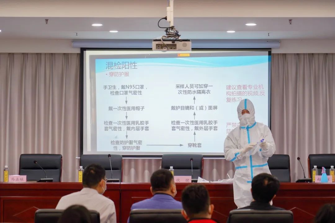 會上,預防醫學專業副主任醫師、崮云湖街道社區衛生服務中心公共衛生科科長趙軍為志愿者進行了個人防護培訓,公司負責同志分別向黨員員先鋒隊與青年志愿服務隊授旗。
