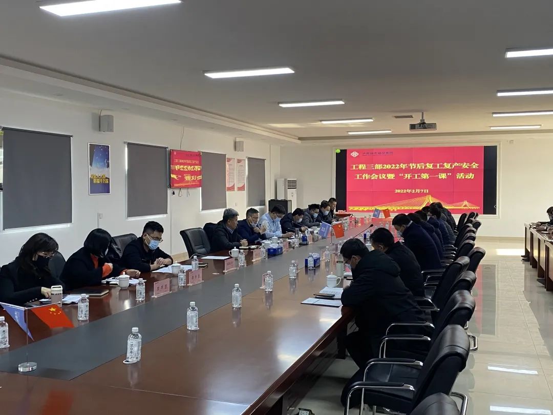 為傳達(dá)落實(shí)省、市、集團(tuán)安全工作會議精神,加強(qiáng)復(fù)工復(fù)產(chǎn)安全管理工作,落實(shí)省、市“開工第一課”專題活動要求,2月7日,集團(tuán)工程三部組織召開2022年節(jié)后復(fù)工復(fù)產(chǎn)安全工作會議暨“開工第一課”活動,集團(tuán)副總經(jīng)理許為民出席會議,工程三部全體人員及各參建單位項(xiàng)目負(fù)責(zé)人參加會議。