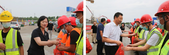 活動中,慰問人員將防暑降溫慰問品送到建設(shè)者手上,感謝他們?yōu)闈辖ㄔO(shè)所作出的貢獻,并叮囑大家勞逸結(jié)合,增強自我防護意識,避免高溫及疲勞作業(yè),統(tǒng)籌抓好疫情防控、安全生產(chǎn)和項目建設(shè)工作。