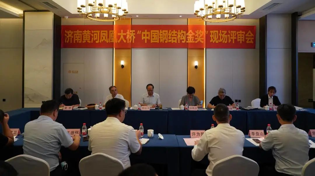 核查中,評審專家組現場察看了濟南黃河鳳凰大橋工程建設情況;聽取了建設單位、施工單位、設計單位、監理單位等專題匯報;專家組根據匯報內容,提出問題、進行質詢,并查驗了施工技術資料,經過專家組討論研究,一致同意濟南黃河鳳凰大橋入圍“中國鋼結構金獎”評選名單。