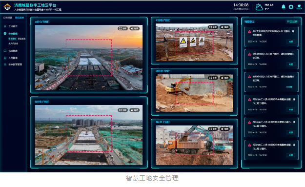 目前,城建集團公司結合工程一線施工實際,聯合百度開發智慧工地管理系統,其中AI邊緣計算盒子可通過訓練模型等方式智能識別發現問題,自動報警反饋推送至相關人員,形成全方位、多層次、無死角監控預警,從原來的“人找事”轉變為“事找人”,進入“智慧”工地管理階段。