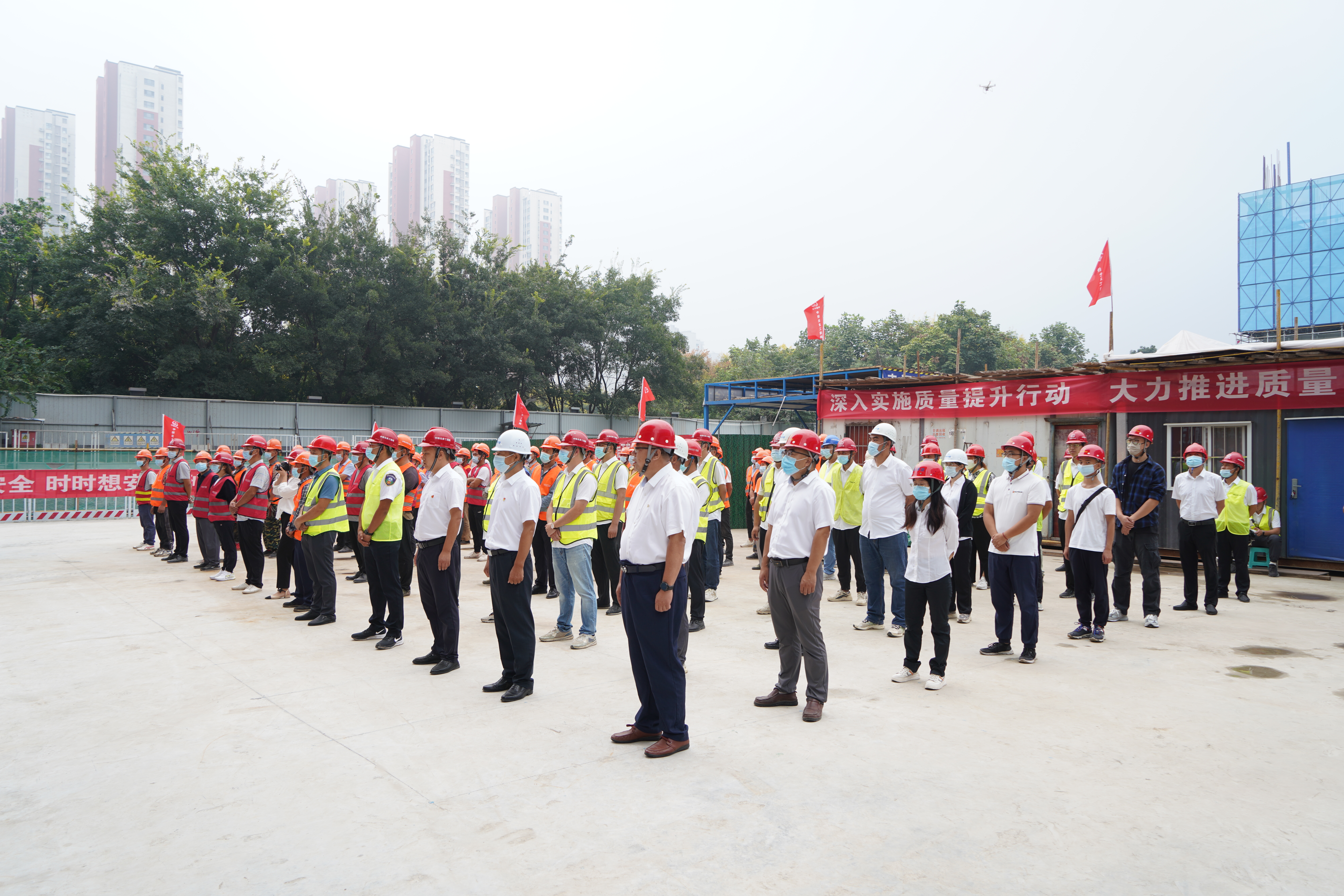 項目建設中,項目黨支部充分發(fā)揮基層黨組織戰(zhàn)斗堡壘作用,以“三面旗幟進班組,工匠精神鑄精品”為載體,深度融入施工生產,不斷強化員工的責任擔當意識,有力促進安全生產,并認真開展創(chuàng)建廉潔示范項目部活動。同時,項目建立質量管理體系,明確分工和責任,明確獎罰機制。成立QC質量活動小組,重點對裝配式安裝進行科研;每個分部分項工程編制質量專項方案,每道工序開工前進行交底,嚴格執(zhí)行“首件樣板制度”過程實施“三檢制度”,發(fā)現問題形成清單記錄,及時閉合整改,實現疫情防控、工程建設、文明施工同步推進。