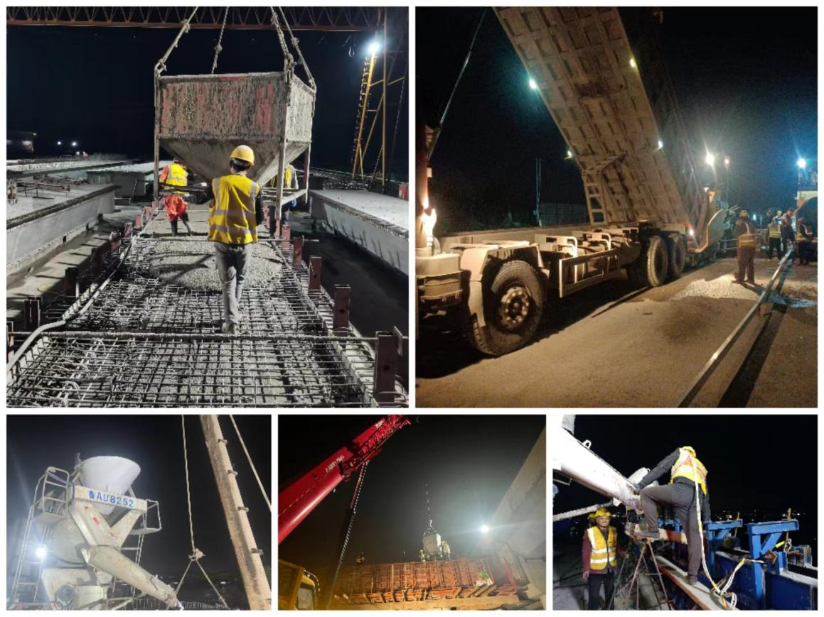 第三階段交通導改路段全長490米,共計18跨,由105片箱梁、66棵樁基、56根墩柱組成,總面積約7000平方米。項目部前后場緊密配合,優(yōu)化施工順序,強化工序銜接,共計調(diào)配攤鋪機3臺、雙鋼輪壓路機4臺、運輸車20余輛,連續(xù)施工24小時順利完成導改路段路面攤鋪,提前一周完成施工。左幅的貫通為橋梁右幅施工提供了作業(yè)面,仲宮大橋互通區(qū)施工進入沖刺階段。