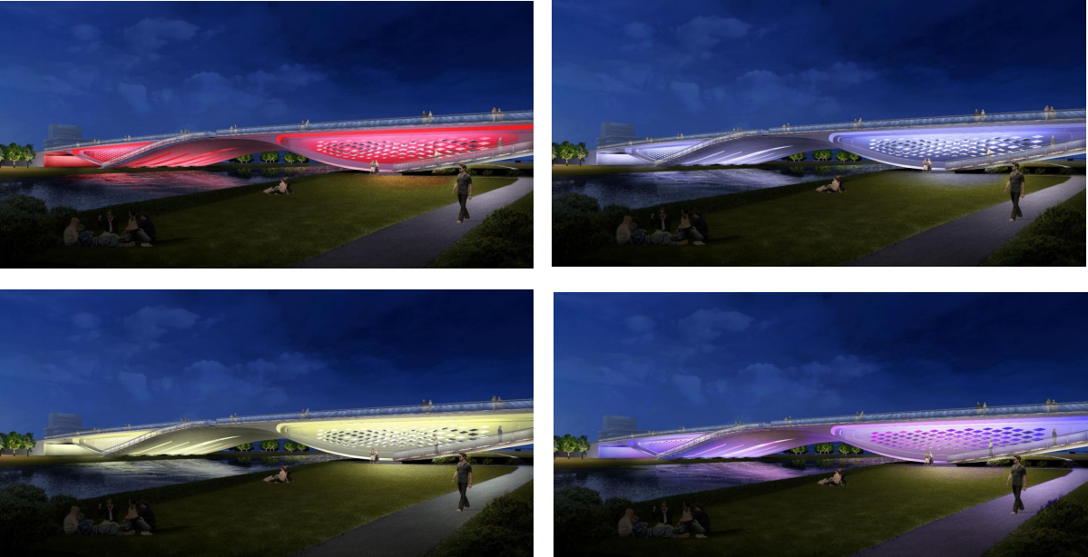 橫一路、橫二路大寺河橋作為起步區(qū)規(guī)劃的第一批景觀橋梁,由濟(jì)南城市建設(shè)集團(tuán)有限公司受委托建設(shè),兩座橋梁由世界著名橋梁設(shè)計(jì)師Marc MIMRAM先生主設(shè)計(jì),通過研究濟(jì)南的歷史和文化,以泉與太極這個(gè)設(shè)計(jì)為根基,將泉城的剛中有柔、柔中帶剛,與太極互為印證,力與美相結(jié)合,完成兩座景觀橋梁的設(shè)計(jì)。