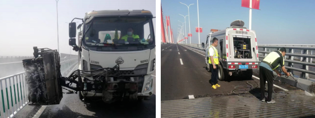 對橋面、防護欄進行深度保潔,為過往司乘提供舒適的出行環境。