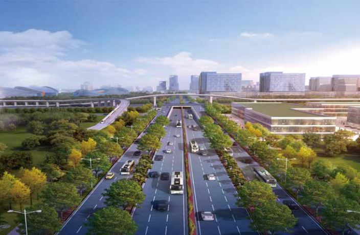 項目是黃河北岸復合交通走廊,是起步區內部重要的快速通道,作為起步區的景觀軸、交通軸、經濟軸、功能軸,串聯 3 大組團 5 處重點片區;同時也是銜接多條跨黃通道,溝通起步區與主城區,加強南北聯系的重要走廊。黃河大道考慮交通功能優先、兼顧綠色出行、生態景觀等多重需求。