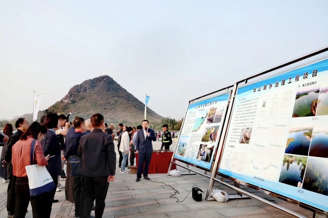 會議期間,與會代表來到華山景區考察華山湖生態修復成果。建設集團工程二部、園區公司等單位全力做好現場保障及講解工作,向與會嘉賓生動展示了華山湖生態修復工作成果。華山湖通過建湖、引水、養湖,將華山大溝和山頭店溝兩處黑臭水體污染源統籌治理,讓華山湖再現“鵲華煙雨”勝景,完成了昔日臭水溝到文旅新地標的“華麗蝶變”,是濟南生態治理的生動實踐。