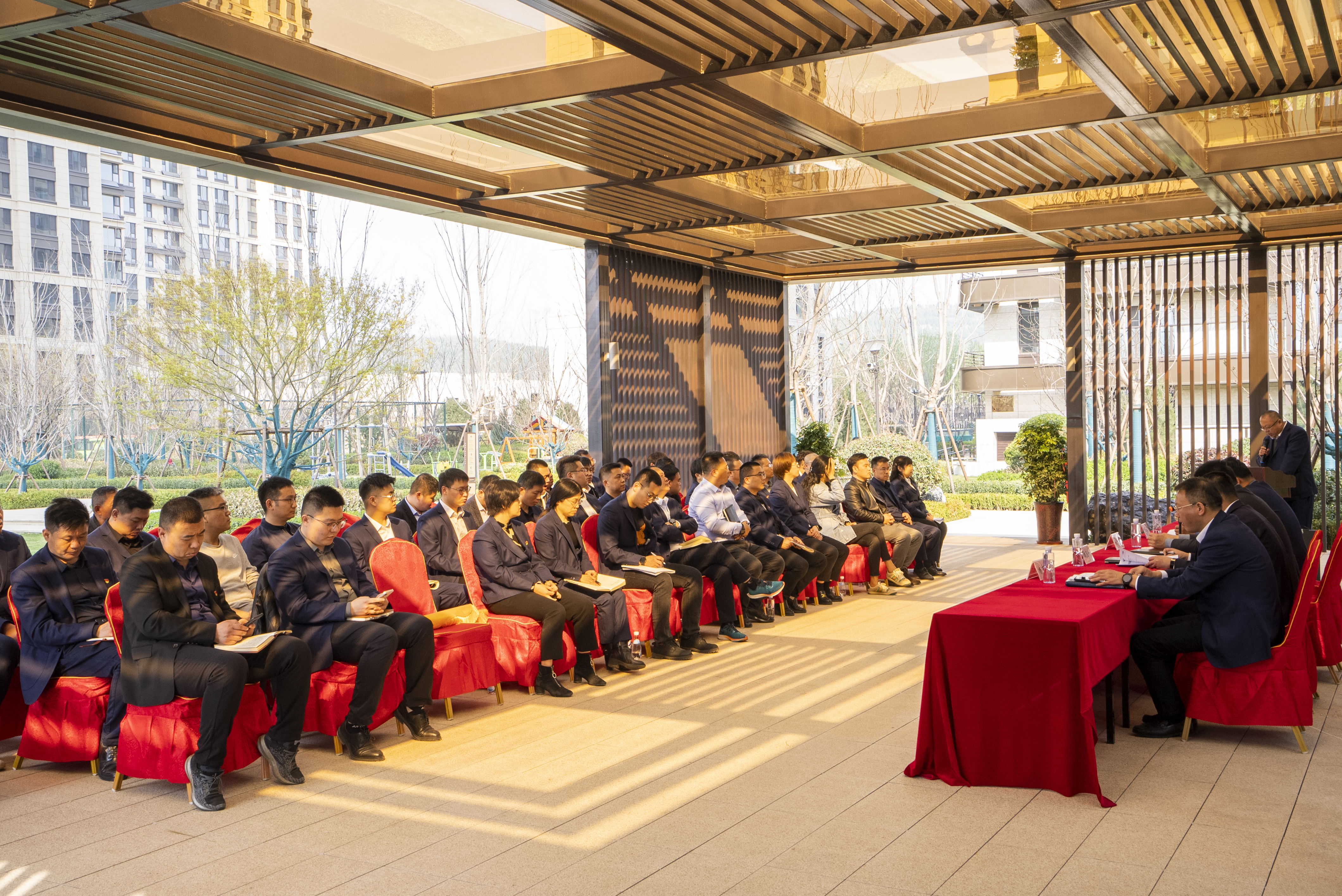 會前,與會人員參觀了天風云墅二期建設(shè)情況,該項目通過“攻堅奮戰(zhàn)160天、融心協(xié)力交好房”活動實現(xiàn)提前7個月高質(zhì)量竣工交付的管理目標。