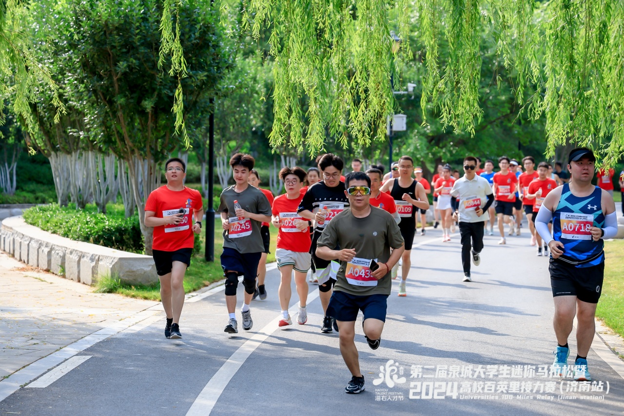 本屆賽事不僅是一次長跑愛好者的盛會,還是展示城市風采、提升城市軟實力的一扇窗口。隨著鳴笛起跑,大學生迷你馬拉松、2024高校百英里接力賽選手從起跑線魚貫而出,他們用腳步丈量綠色泉城,感受湖光山色之美,加油聲、歡呼聲響徹賽道兩側,熱烈的氛圍感染全場。華山湖景區綠樹成蔭,選手們在盡情享受跑步樂趣的同時,近距離感受華山的自然人文美景和詩意浪漫。