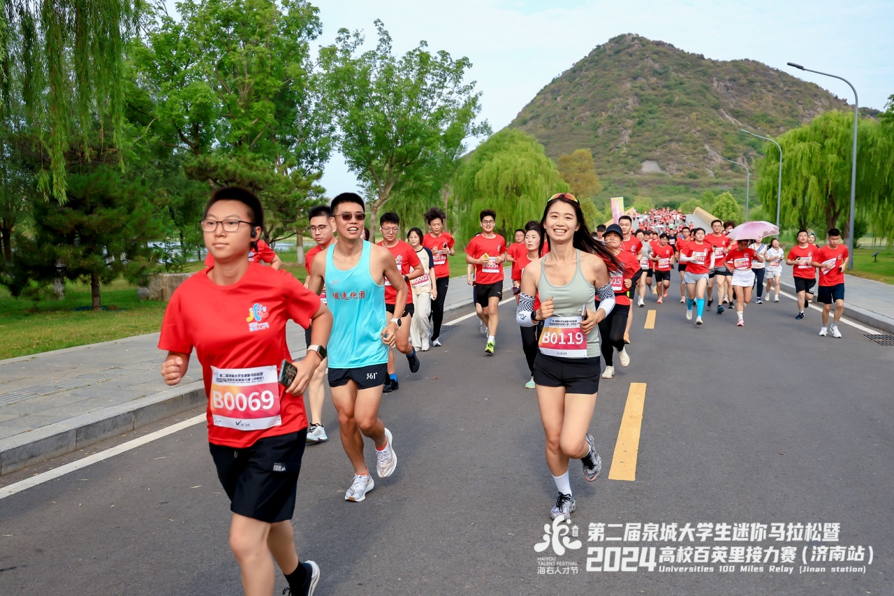 近年來,濟南聚力優化人才發展環境,提升城市軟實力,著力構建亮點紛呈的體育賽事活動體系,開展“國字號”體育品牌創建。本次比賽設置56公里團隊接力和5.6公里個人迷你馬拉松兩個項目,個人項目參賽選手不僅獲得完賽獎牌,還參加現場100份錦鯉的抽取;百英里接力賽前10名的團隊,除了贏取參賽獎金,前四名還將晉級全國總決賽。