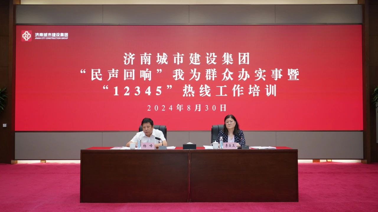 為進一步提高“12345”市民服務熱線工作辦理質效,確保集團民生保障工作取得突破,8月30日,濟南城市建設集團召開“民聲回響”我為群眾辦實事暨“12345”熱線工作培訓專題會議,總結梳理了集團1至8月熱線的辦理情況,對集團熱線辦理工作進行再部署、再動員,集團黨委副書記、總經理楊峰出席會議并講話,集團副總經理李晶玉主持會議,集團相關部室、子公司(項目部)主要負責人,12345熱線分管負責人及專職人員參加會議。