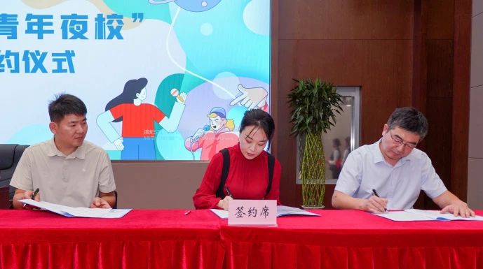 許洪波、任立先為建設(shè)集團青年之家揭牌;團市委組織部相關(guān)負責同志、建設(shè)資產(chǎn)公司負責同志、青年夜校建設(shè)集團校區(qū)負責同志共同簽訂《濟南團市委“青年之家·青年夜校”項目運營協(xié)議》;與會領(lǐng)導(dǎo)為“青年之家·青年夜校”6名授課教師代表發(fā)放聘書。