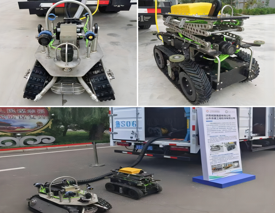 城建集團(tuán)公司創(chuàng)新研發(fā)的管道清淤機(jī)器人、管道雷達(dá)檢測機(jī)器人兩款智能建造高新裝備均達(dá)到IP68等級,可在管道滿水情況下作業(yè)。其中,管道清淤機(jī)器人對管道內(nèi)淤堵采用聲吶定位,前端搭載高壓噴頭及吸污口,實(shí)現(xiàn)DN800及以上管徑管道的快速高效清淤;管道雷達(dá)檢測機(jī)器人搭載高性能防水雷達(dá)天線,并設(shè)有升降裝置,可根據(jù)不同管徑,靈活調(diào)整雷達(dá)高度,實(shí)現(xiàn)DN800及以上管徑管道內(nèi)表面及壁后缺陷的精準(zhǔn)檢測。